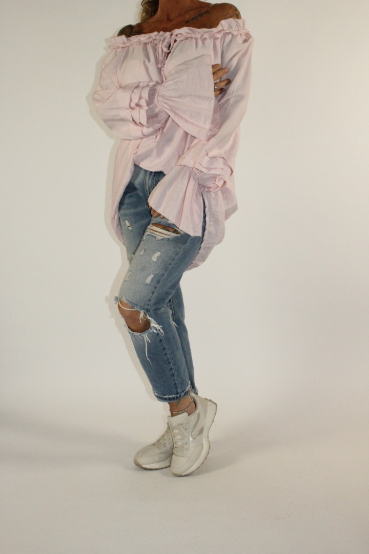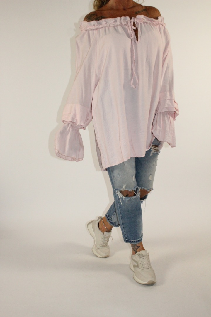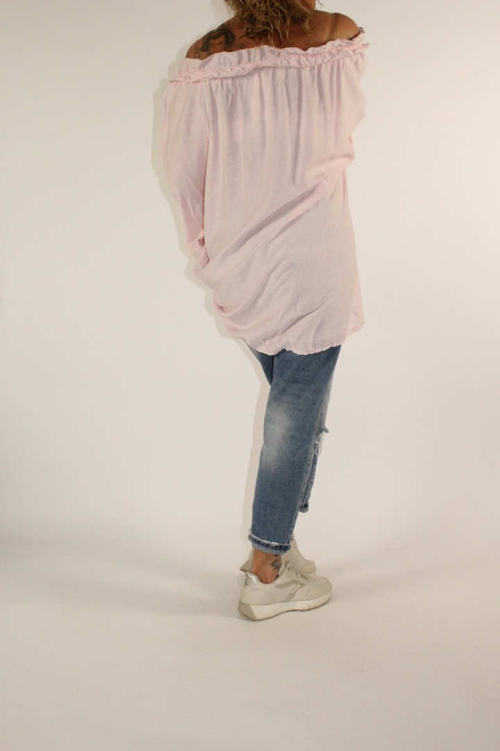Elastische hals waardoor je hem off shoulder kan dragen